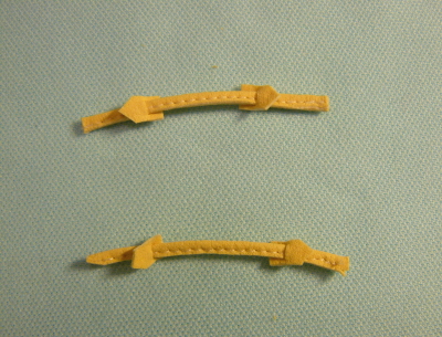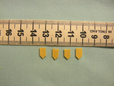(sankojen päihin) neljä 5 mm x 8 mm kokoista palaa.