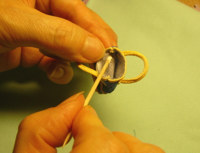 Nuppineulojen katkaistuihin päihin laitetaan liimaa.
