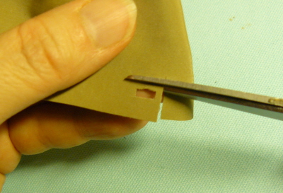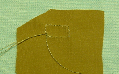 suorakulmion muotoinen reikä isompaan kankaaseen ja