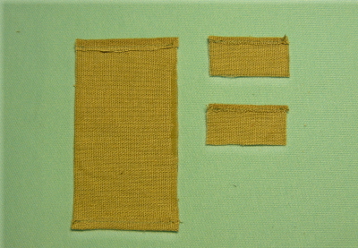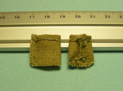 kankaasta suorakulmion muotoinen lappu. Koko 7 mm x13 mm.