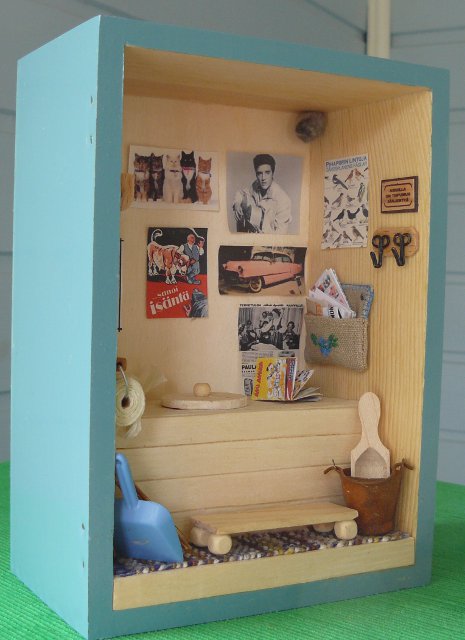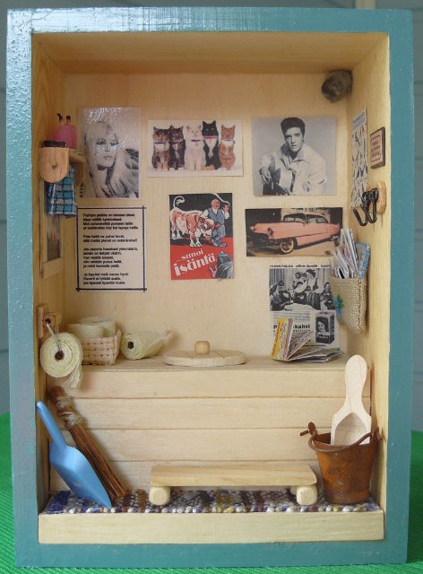puurasiaan. Julisteet seinällä ovat netistä printattuja kuten