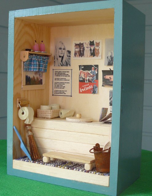vesiväreillä. Seinällä on WC-aiheinen runo.
